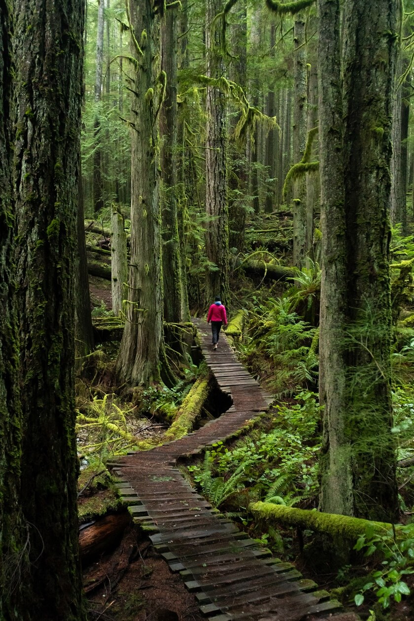 Pacific Rim Highway #4 brengt u dwars over Vancouver Island naar de westkust. De eerste bezienswaardigheid langs deze schitterende weg is Qualicum Falls Provincial Park en 10 kilometer verder kunt u Cathedral Grove bezoeken. Maak hier een wandeling tussen de indrukwekkende Douglas sparren van 800 jaar oud en soms wel 80 meter hoog.