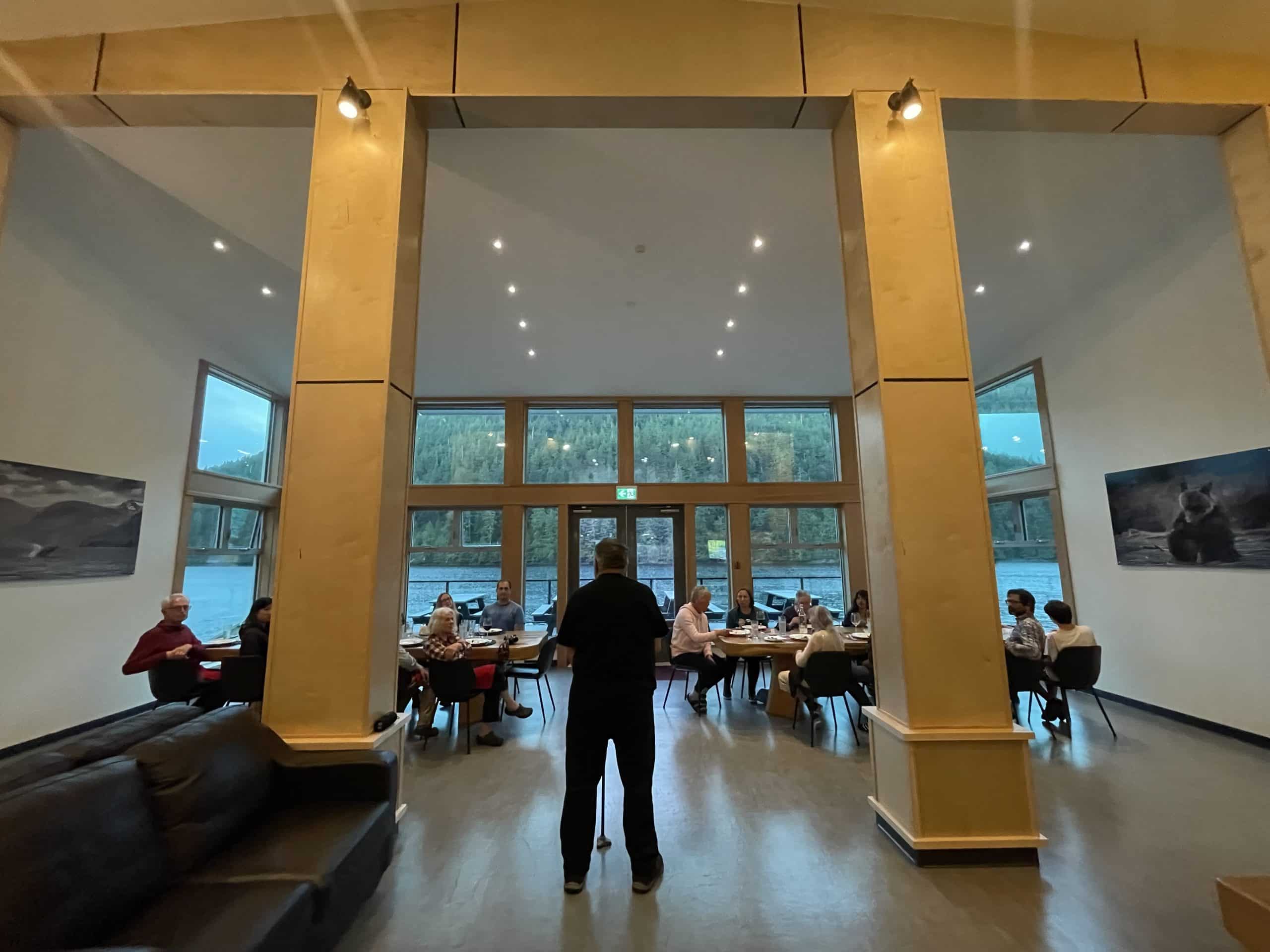 Avondprogramma’s met culturele ervaringen of informatieve presentaties, of vrije tijd met uitzicht op zee of in het dorp Klemtu